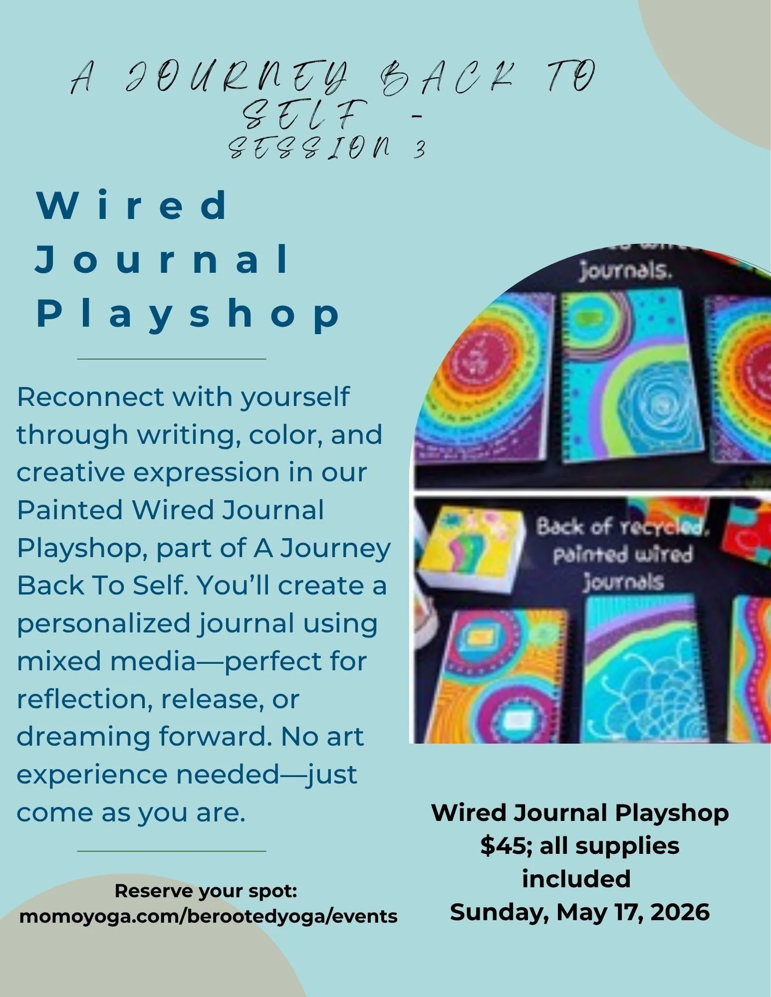 We will create a personalized wire bound journal using mixed media- perfect for release, reflection, dreaming, or anything else your heart needs in the moment.